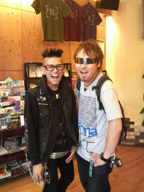 BRAIN BUSTERのKAZZがかけていたサングラスをかけた僕とKAZZ。