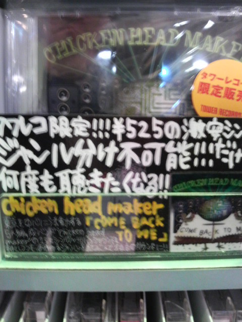 多摩テック代表chickenのCD新宿タワレコ店の模様。売り切れ店も再入荷しだしているので、皆様要チェキで!