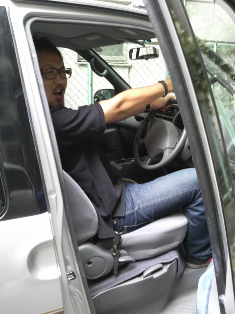 免許ないのに機材車が来た嬉しさのあまり、運転席にいる俺。