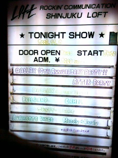先日の日記の予告通り、横浜LOFTへ深夜0時過ぎに高円寺から愛用のママチャリで飛んでブーリンしました。